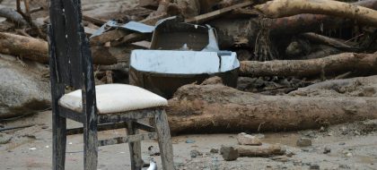 C’è chi ha raccolto le ultime cose stipandole in una valigia. C’è chi aspetta che un pezzo della città venga ingoiato dalla frana. È questione di tempo e nessuno sa quanto potrà durare. La voragine avanza, ingoia lo spazio tra il disastro e il cuore, si avvicina al centro pulsante, atrio e ventricolo della comunità, la piazza, la chiesa, il municipio. Una scuola è già stata abbandonata, la biblioteca – faro solitario di cultura – è destinata a cadere. Anche una croce giace nel ventre della voragine insieme alle auto distrutte e alle mura sbrecciate. Sacro e profano si mescolano, inermi, al cospetto del disastro.